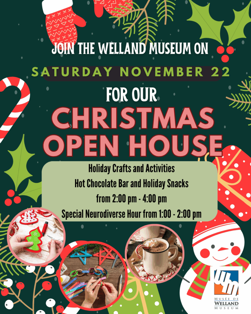 Join us on Saturday, November 22 for a festive afternoon at the Welland Museum! Enjoy family-friendly activities including a hot chocolate station, scavenger hunt, LEGO building station, and a holiday craft to take home.