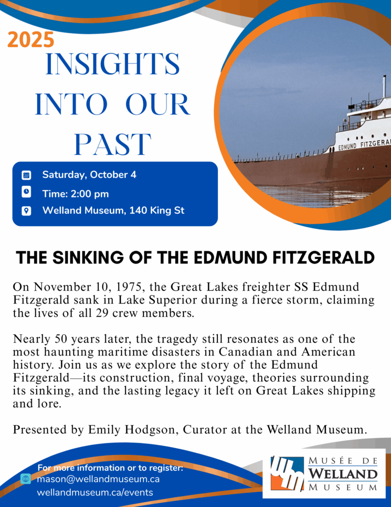On November 10, 1975, the Great Lakes freighter SS Edmund Fitzgerald sank in Lake Superior during a fierce storm, claiming the lives of all 29 crew members. Nearly 50 years later, the tragedy still resonates as one of the most haunting maritime disasters in Canadian and American history. Join us as we explore the story of the Edmund Fitzgerald, its construction, final voyage, theories surrounding its sinking, and the lasting legacy it left on Great Lakes shipping and lore.