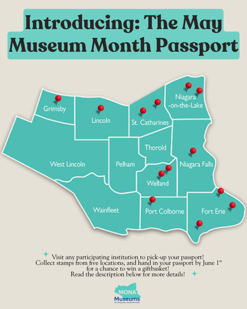 Celebrate Museum Month this May by discovering the rich history and culture of Niagara through the MONA Passport Program. Pick up your passport at any participating museum and start your journey, each visit brings you one step closer to a prize! Visit at least five participating locations throughout the month, then submit your completed passport for a chance to win.