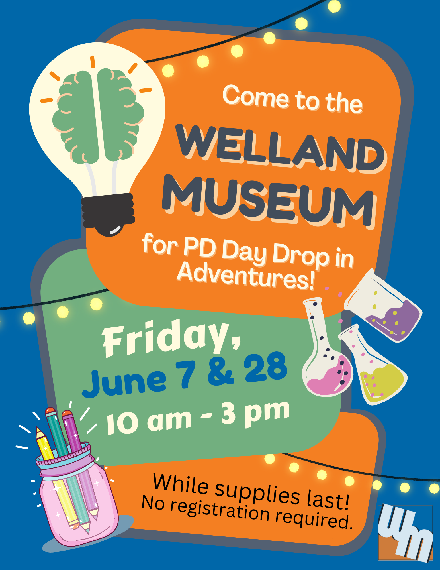 There’s always something happening at the Welland Museum! From hands-on workshops and family drop-in programs to special lectures, seasonal celebrations, and community events, our calendar is full of opportunities to learn, explore, and have fun. Whether you’re visiting with friends, family, or your class, our events offer engaging experiences that connect people of all ages to the stories, people, and culture that make our community unique.